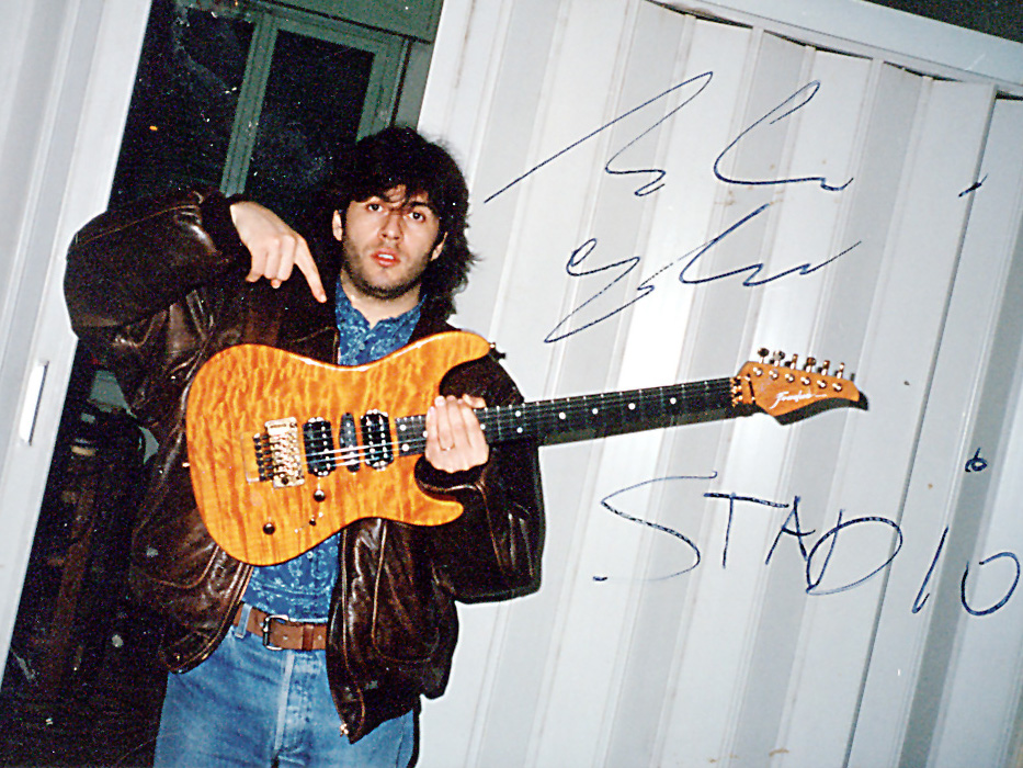 Come Dodi Battaglia, parliamo di uno dei più grandi chitarristi italiani e un cultore del suono come ce ne sono veramente pochi. Con Andrea posso parlare alla pari perché è esperto come un liutaio. Di lui, e del momento in cui è venuto a ritirare la sua GFF nel mio laboratorio (avevo sì e no 27 anni) conservo ancora la foto autografata che vedi qui. Ha suonato con Eros Ramazzotti, Miguel Bosé, Loredana Bertè, Francesco Baccini, Vasco Rossi, Franco Battiato, Anna Oxa; Patty Pravo, Riccardo Fogli. e mille altri.